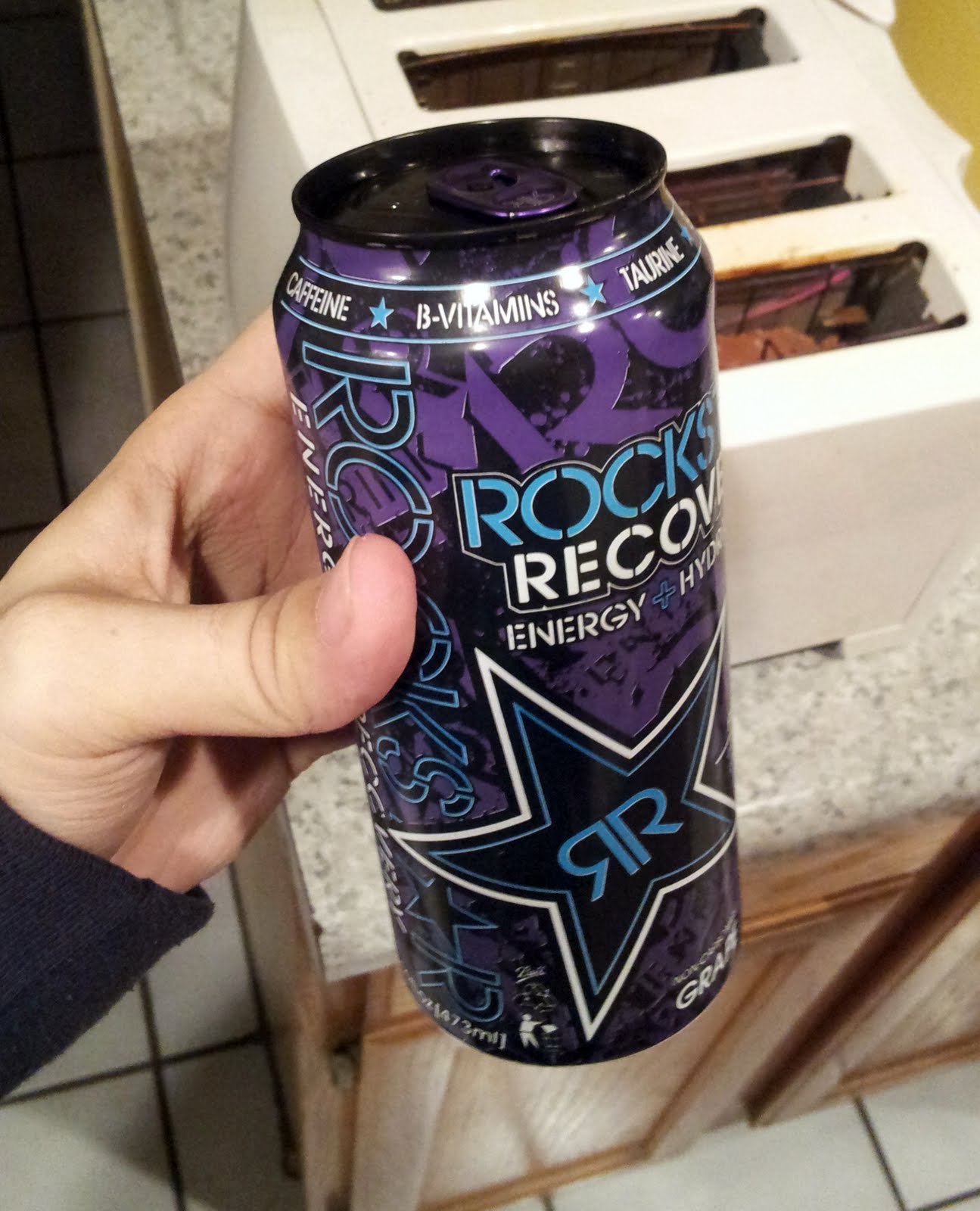 Que energético mais... psicodélico. Se liga que até o anel da lata é colorido! Só gostaria de saber duas coisas: 1) quem comprou isso; 2) quem vai beber isso. Tô curioso para ver alguém ligadão procurando os papparazzi e jurando que já born this way. Já imaginou a Sashi com um vestido de bifes suínos (não pode de vaca, ela é indiana) cantando Edge of Glory? Hahaha Coitada da véia xD